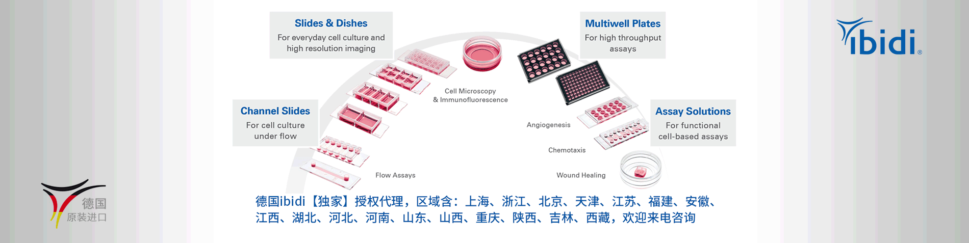 ibidi在細胞顯微成像領(lǐng)域做出了重大突破,創(chuàng)新細胞鏡檢解決方案。公司產(chǎn)品囊括范圍較廣,即可實現(xiàn)傳統(tǒng)細胞培養(yǎng),也可完成復(fù)雜的細胞實驗(包括血管生成、細胞趨化、傷口愈合及細胞灌流等實驗)。